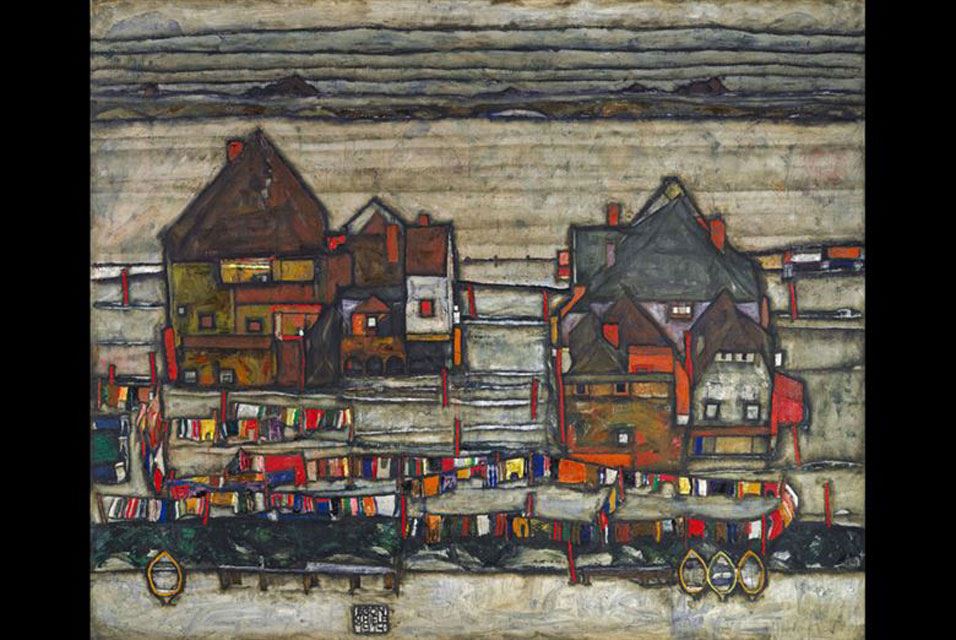 October 12, 1890. Egon Schiele (12 June 1890 - 31 October 1918) was an Austrian painter. A protégé of Gustav Klimt, Schiele was a major figurative painter of the early 20th century. His work is noted for its intensity and its raw sexuality, and the many self-portraits the artist produced, including naked self-portraits. In this image: Egon Schiele, Häuser mit bunter Wäsche,“Vorstadt” II, 1914. Estimate: £22-30 million/ $36-50 million. Photo: Sotheby's.