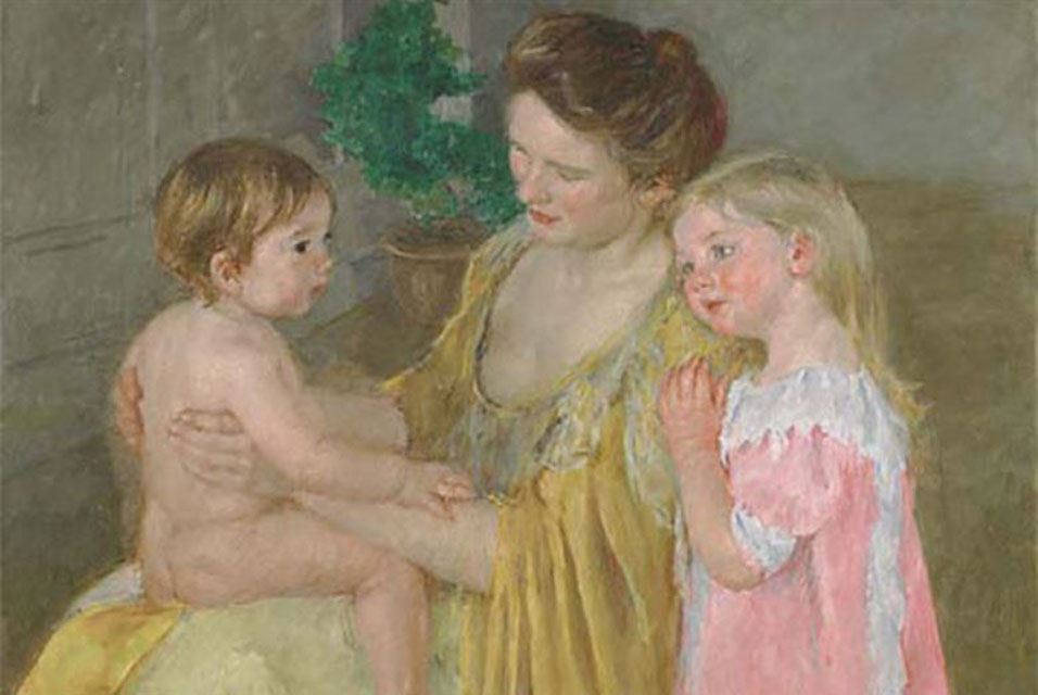 March 14, 1956. Mary Stevenson Cassatt (May 22, 1844 - June 14, 1926) was an American painter and printmaker. She was born in Allegheny City, Pennsylvania (Now part of Pittsburgh's North Side), but lived much of her adult life in France, where she first befriended Edgar Degas and later exhibited among the Impressionists. In this image: Mary Cassatt (1845-1926), Mother and Two Children, 1906. Oil on canvas.