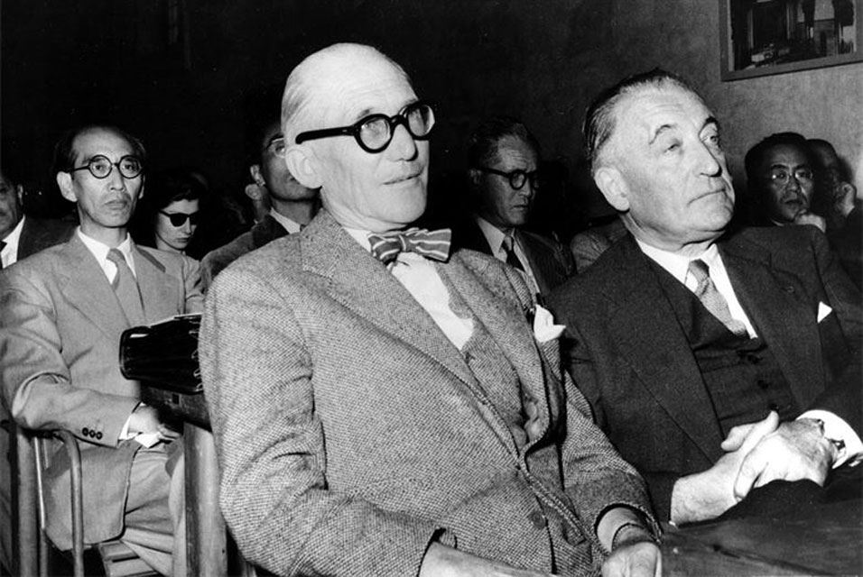 March 06, 1887. Charles-Édouard Jeanneret, better known as Le Corbusier (October 6, 1887 - August 27, 1965), was an architect, designer, urbanist, and writer, famous for being one of the pioneers of what is now called modern architecture. He was born in Switzerland and became a French citizen in 1930. His career spanned five decades, with his buildings constructed throughout Europe, India and America. He was a pioneer in studies of modern high design and was dedicated to providing better living conditions for the residents of crowded cities. Le Corbusier adopted his pseudonym in the 1920s, allegedly deriving it in part from the name of a distant ancestor, "Lecorbésier." He was awarded the Frank P. Brown Medal and AIA Gold Medal in 1961. In this image: French architect Georges Le Corbusier, left, and French writer Jules Romains are shown during a session of the conference of artists from around the world in the Palace of the Doges in Venice, Italy, in Sept. 1952.